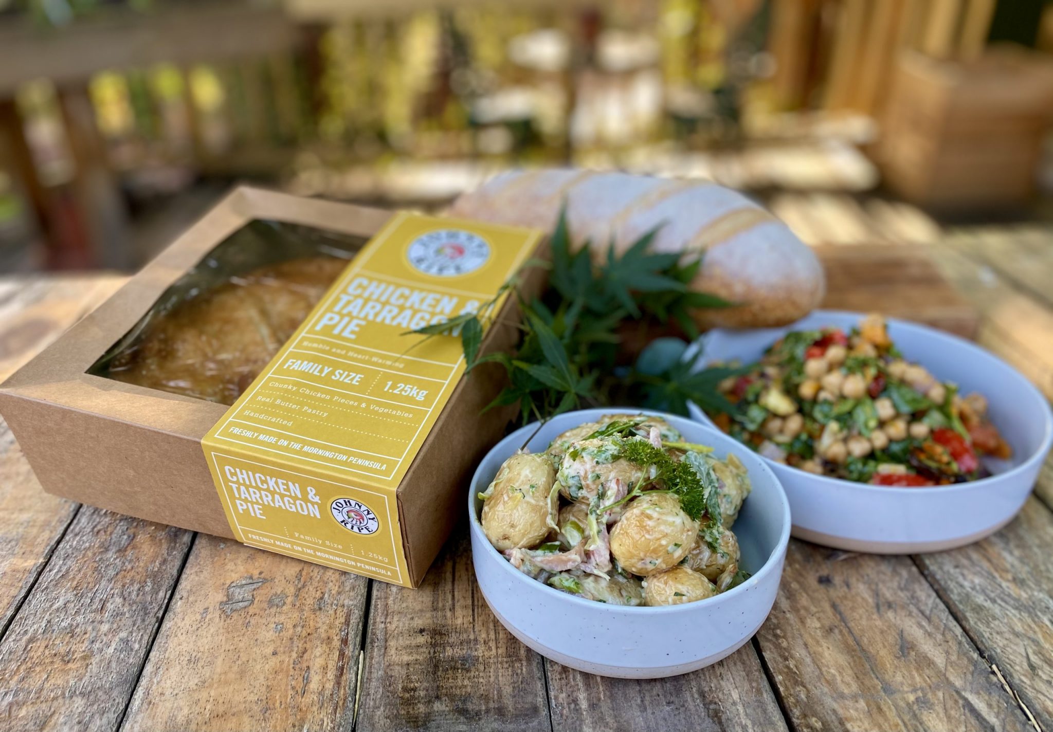 / Chicken & Tarragon Pie, salads & Ciabatta dinner