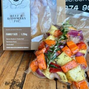 Pre-prepared roasting vegetables coated with our secret herb mix